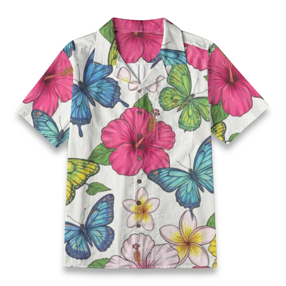 Bring vibrant island energy to your wardrobe with this butterfly and tropical flower Hawaiian shirt, designed to stand out effortlessly.