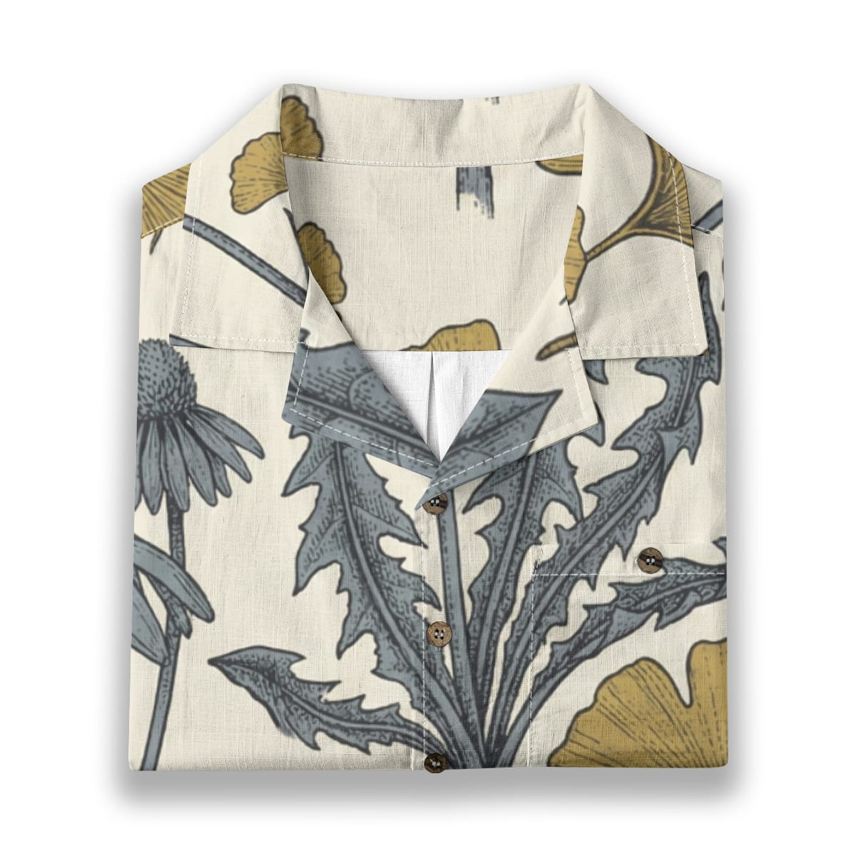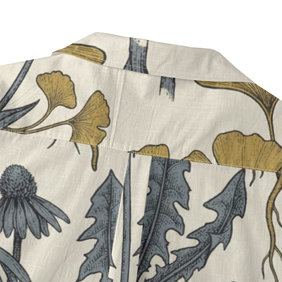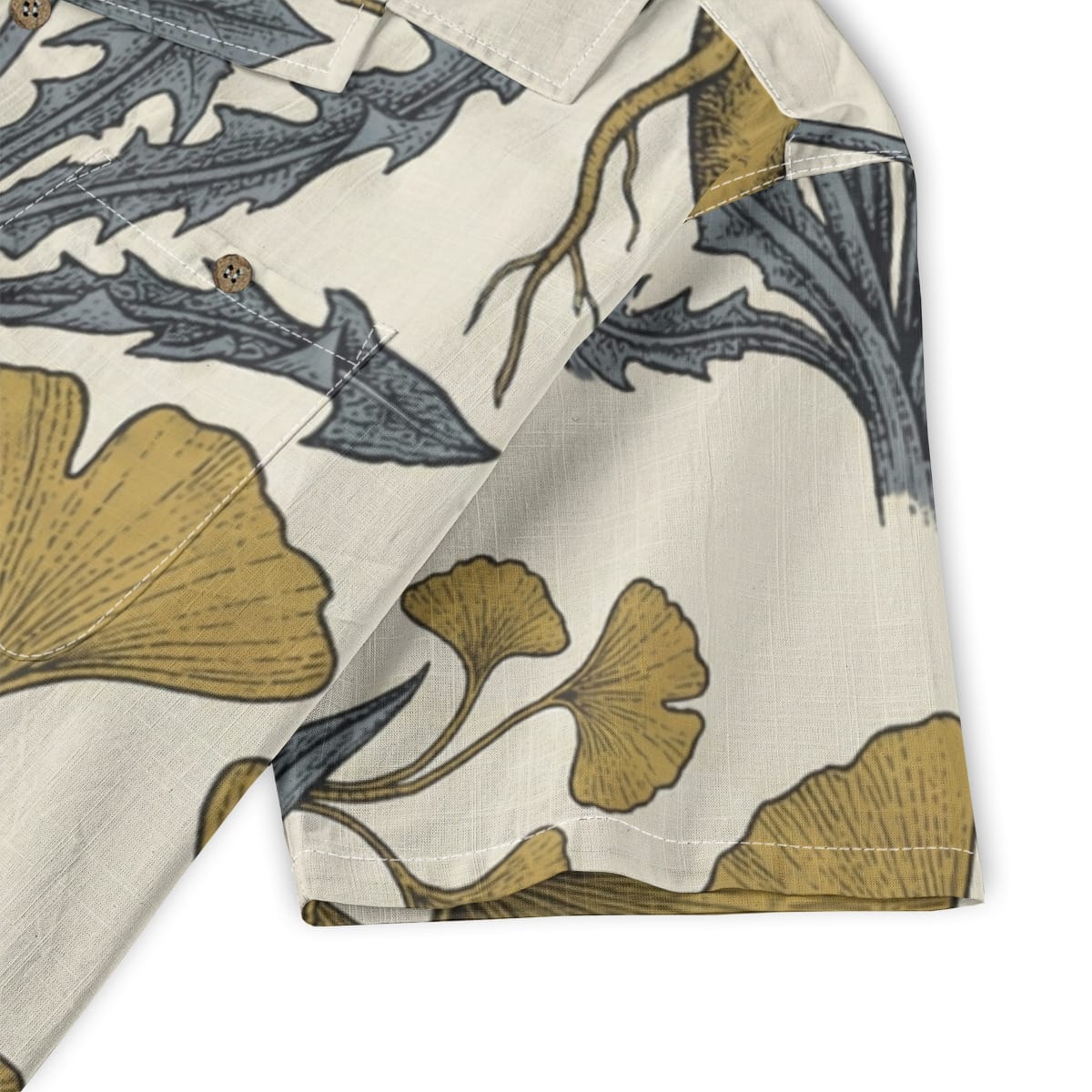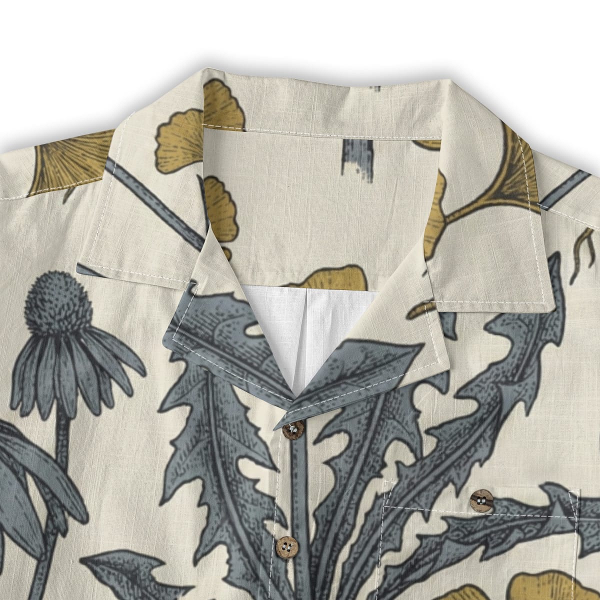 Ginkgo & Wildflower Botanical Illustration Shirt – Botanical Hawaiian Shirt