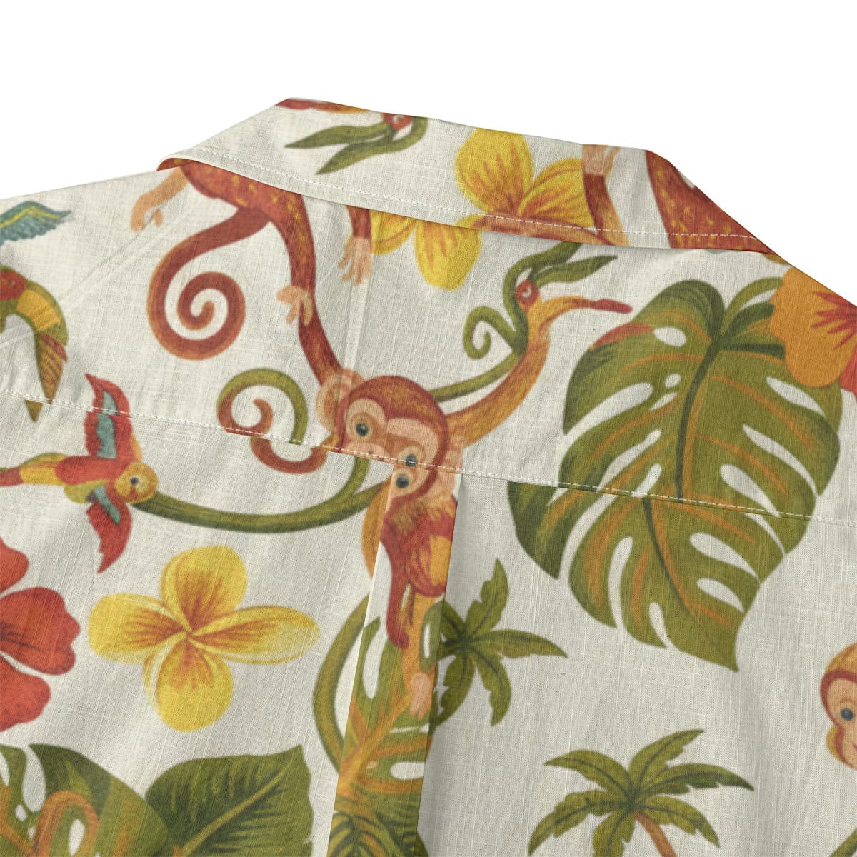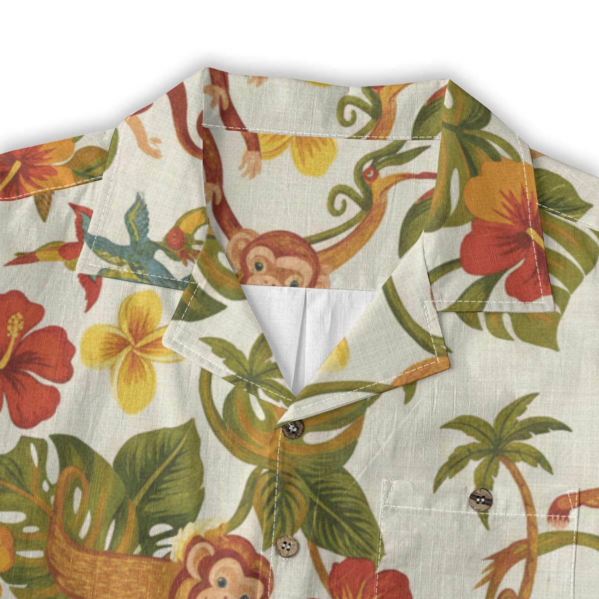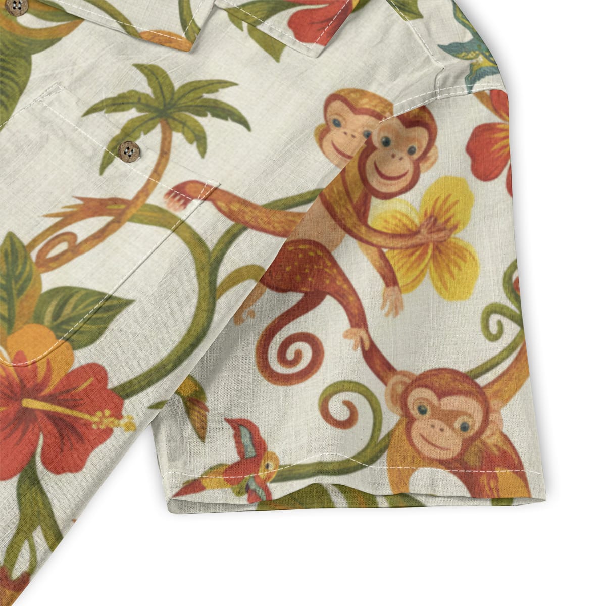 This Hawaiian Shirt features cheerful monkeys swinging through lush tropical leaves, colorful hibiscus flowers, and playful jungle details.