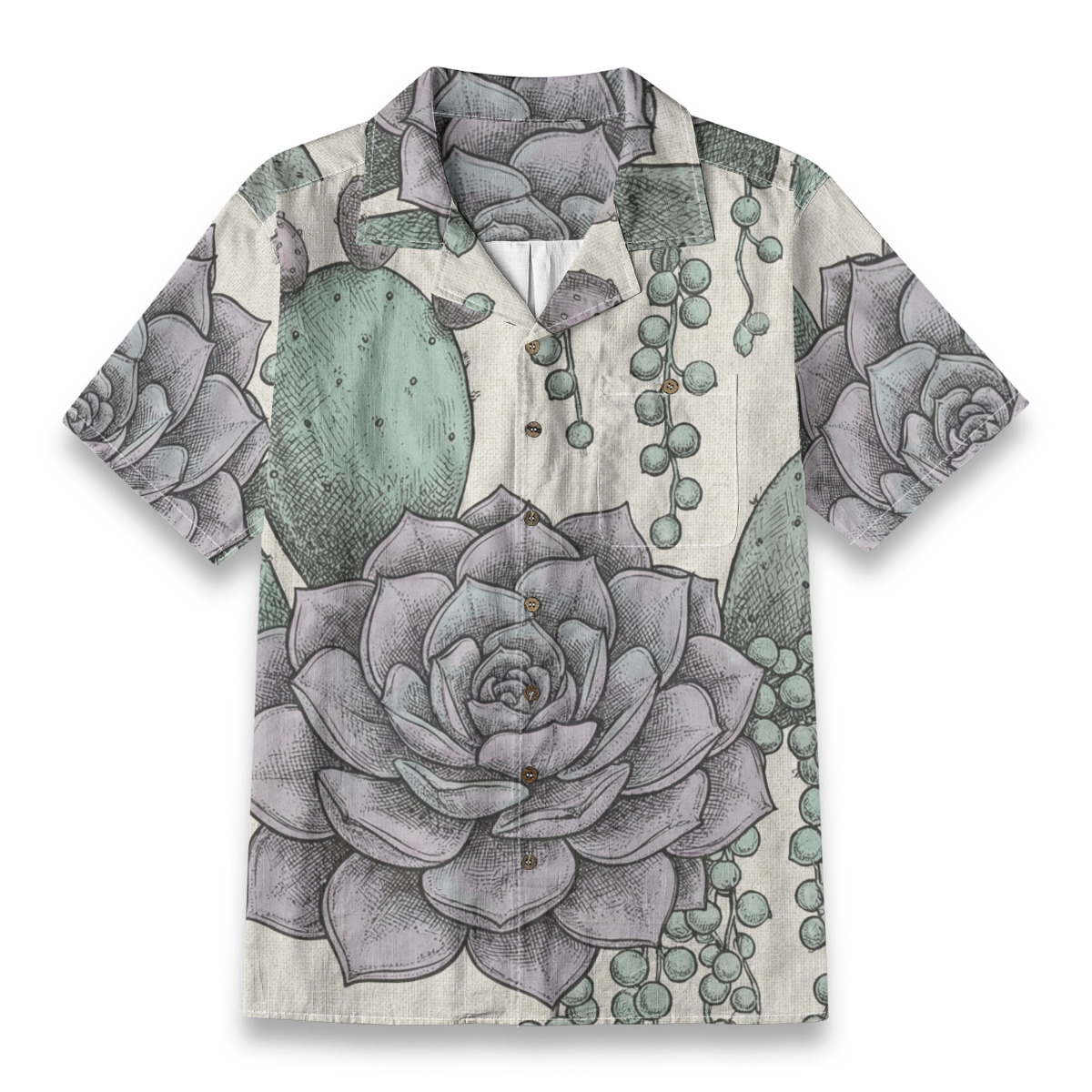 Succulent & Cactus Botanical Illustration Shirt – Botanical Hawaiian Shirt