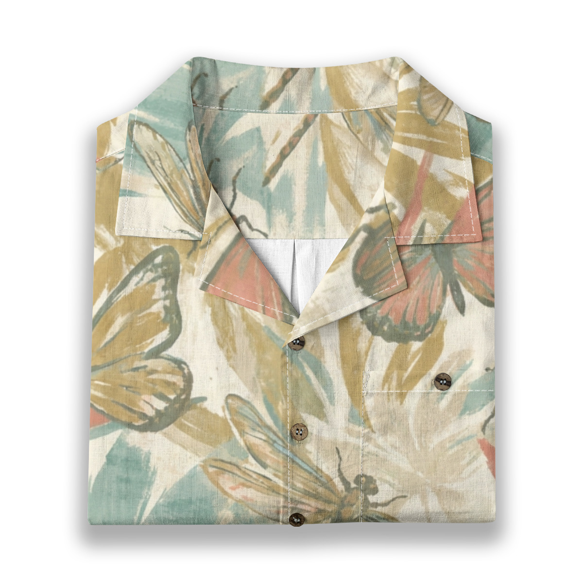 Embrace timeless natural beauty with this vintage butterfly and dragonfly Hawaiian shirt inspired by classic nature art.